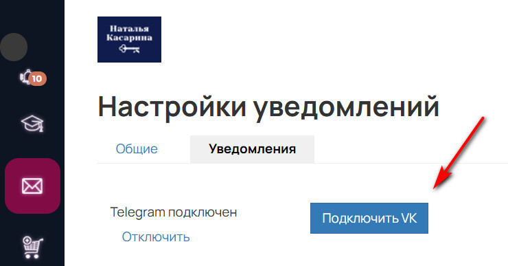 Также Вы можете подключить свой профиль ВК к аккаунту в GetCourse по аналогии с подключением телеграм (в разделе Уведомления в личном кабинете) и получать все важные рассылки и ответы от менеджеров Заботы непосредственно в Ваш профиль в ВК, если Вам так удобнее.