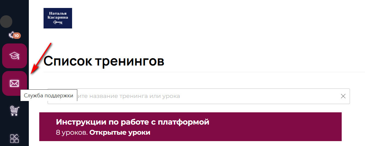 В Вашем личном кабинете на обучающей платформе GetCourse в левой боковой панели найдите значок конвертика и кликните на него.